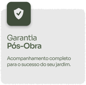 Acompanhamento técnico do jardim por 30 dias e garantia do sistema de irrigação por 180 dias.
